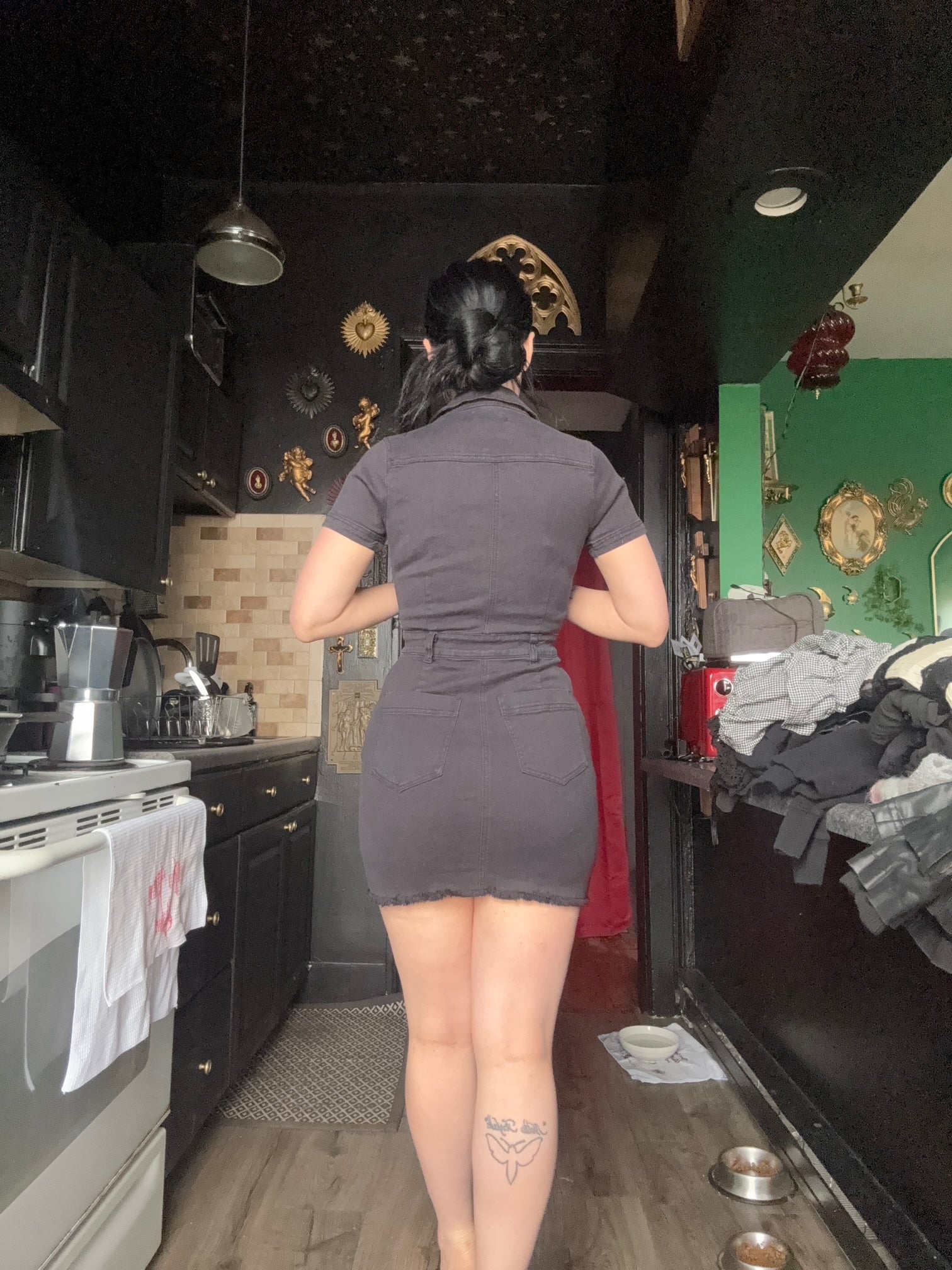 Forever-21 black denim dress.