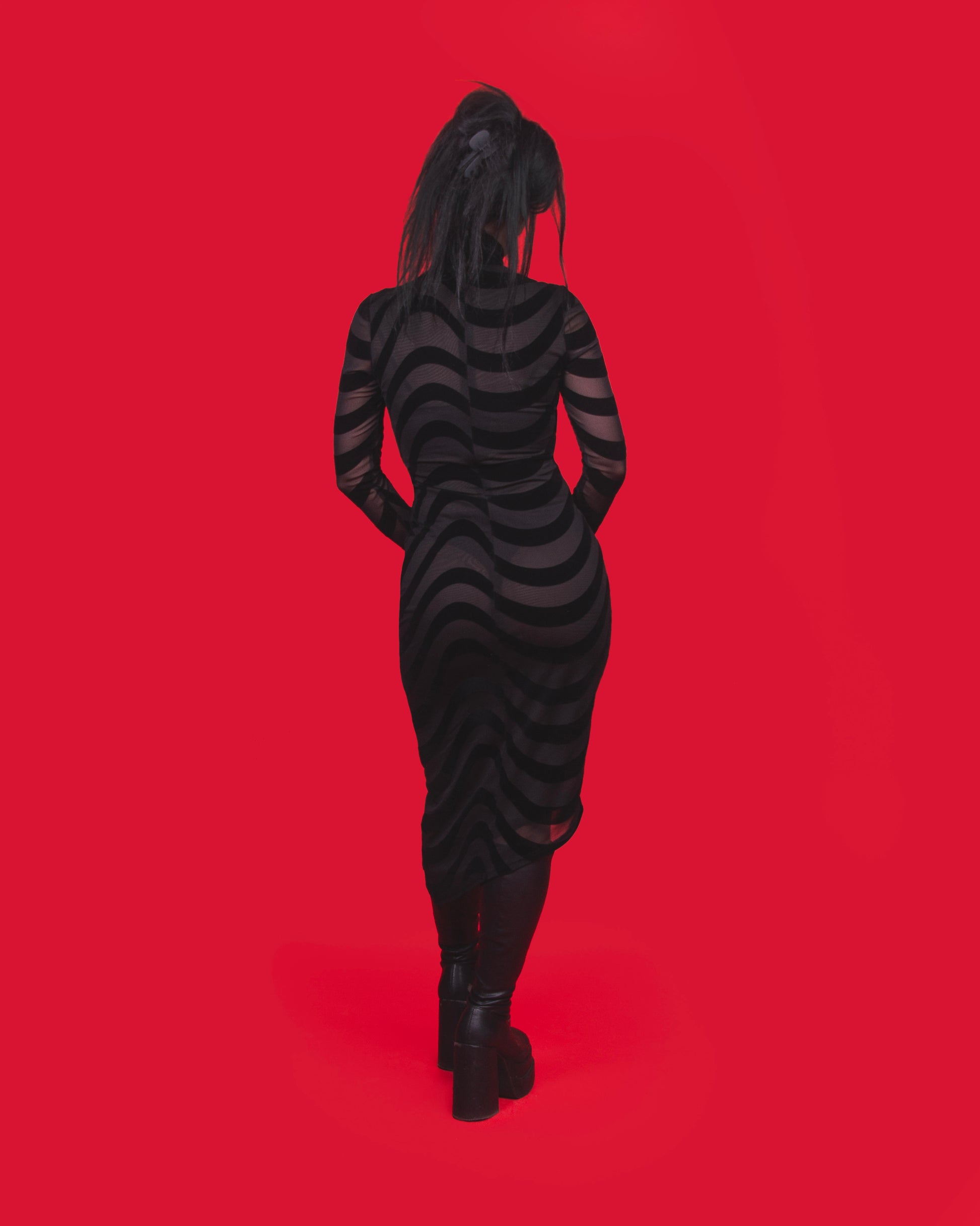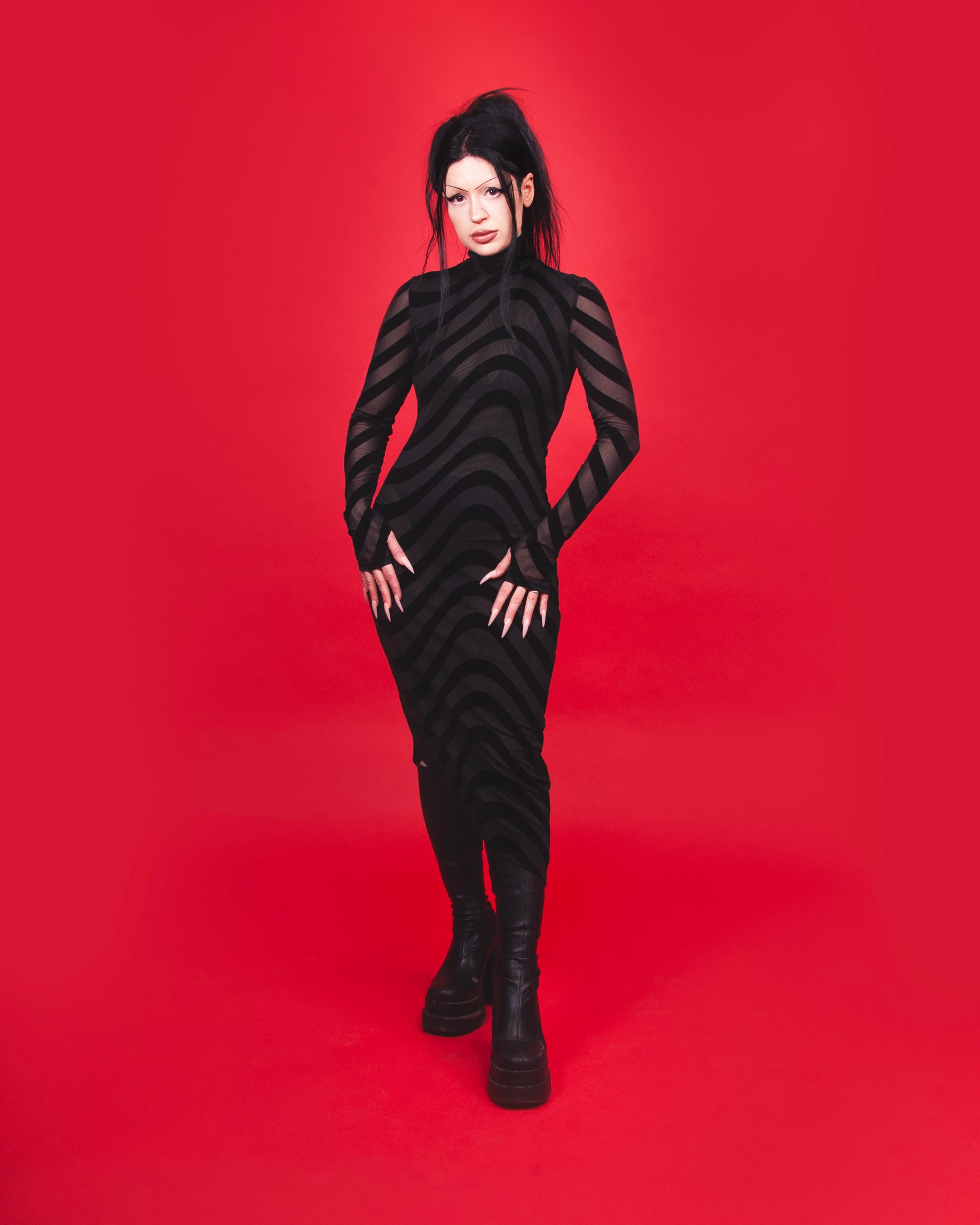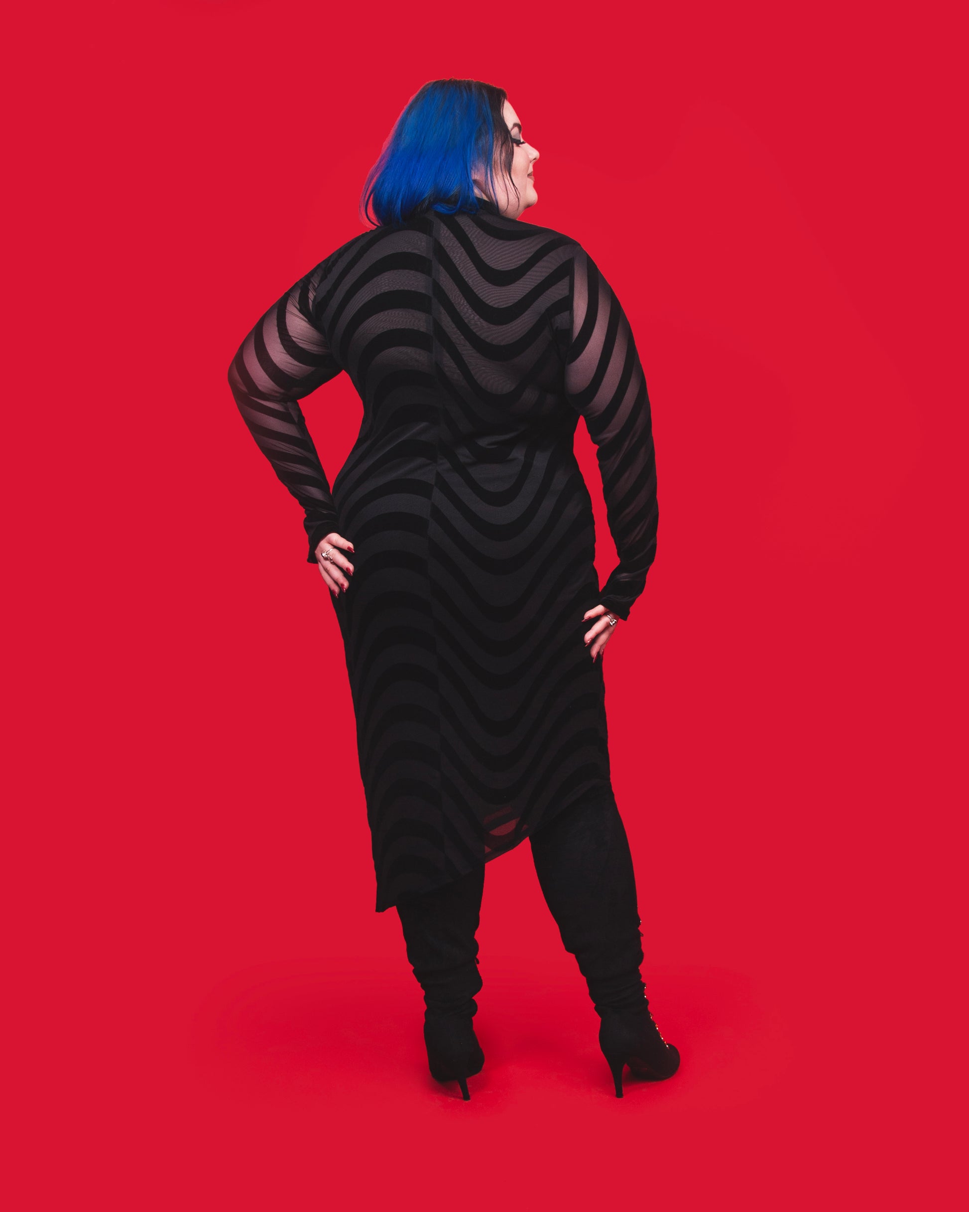 The Violet is a full-length, long-sleeve silhouette featuring sculpted velvet wave detailing throughout. Designed to elongate and contour.